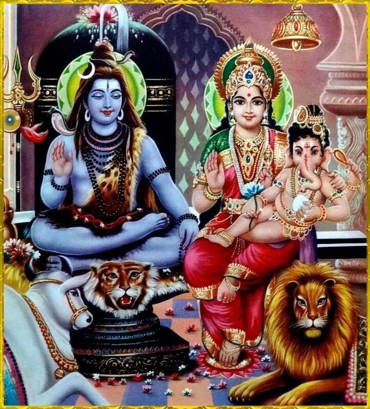 Wall Decor Shiva Parvati Ganesha Hindu Wall Art Pictures Canvas Print Posters Paintings Framed Home Living Room Bedroom Decoration 5 Pieces Ready to Hang(60''Wx32''H)